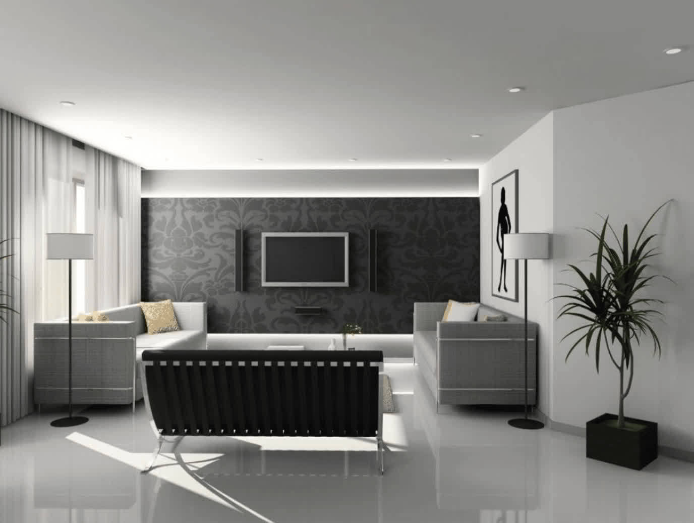天花板和地面:天花板颜色和高度是增加室内层次感和空间视觉效果的重要因素,地面上使用不同材质和大小的家具来确保范围视觉上协调一致。