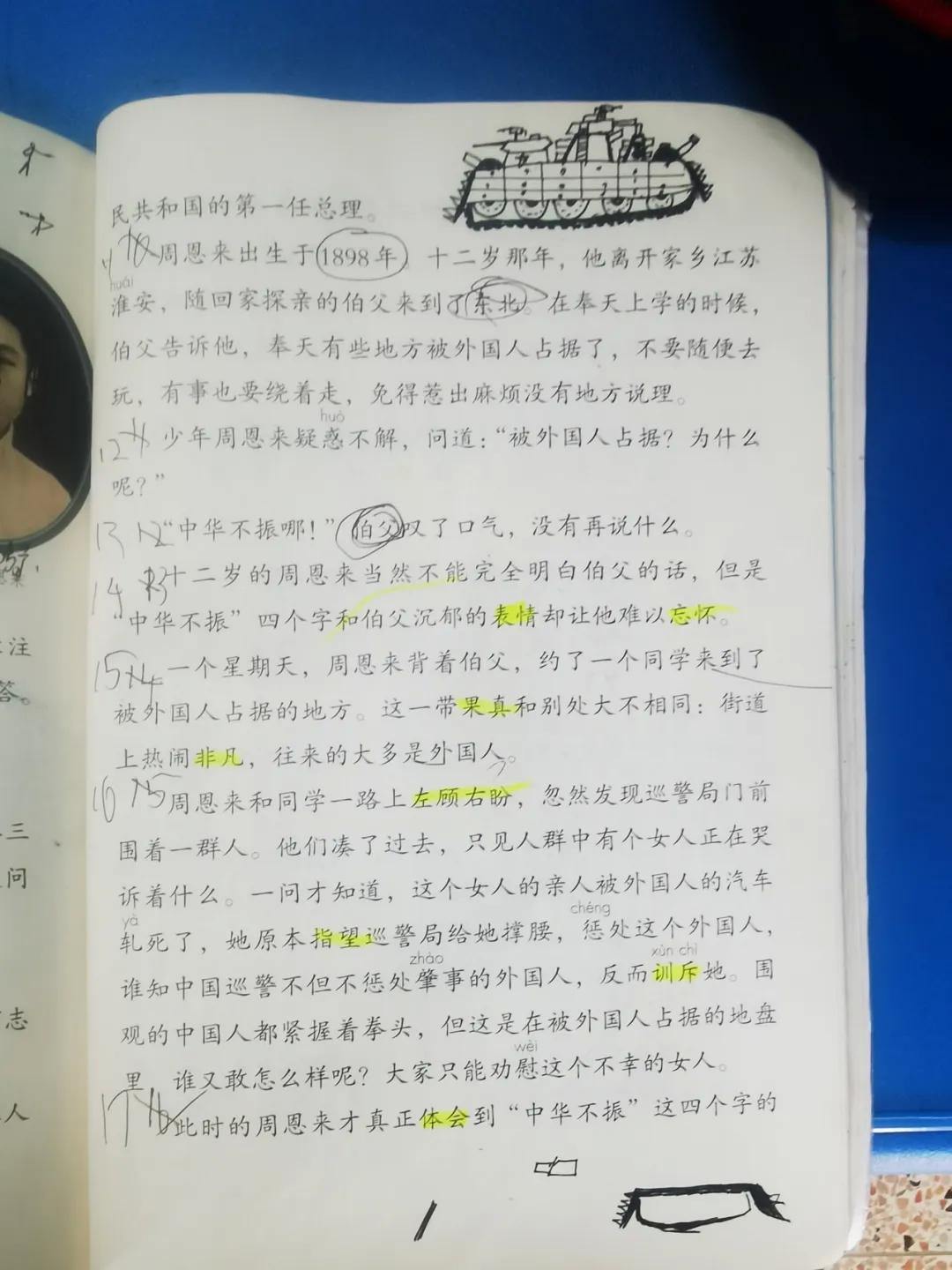 还有老师向潮新闻记者分享了一个有趣的细节,更是引发了家长们的集体“对号入座”:她特意将男生和女生的课本各挑出几本对比,差别格外明显——女生的课本内页除了工整的笔记几乎没有破损,而男生的课本,不光页脚卷成“波浪边”,不少空白处还布满了涂鸦,坦克、Q版小人、小鱼等应有尽有,有的甚至把课文插图里的人物画成了“铠甲勇士”。