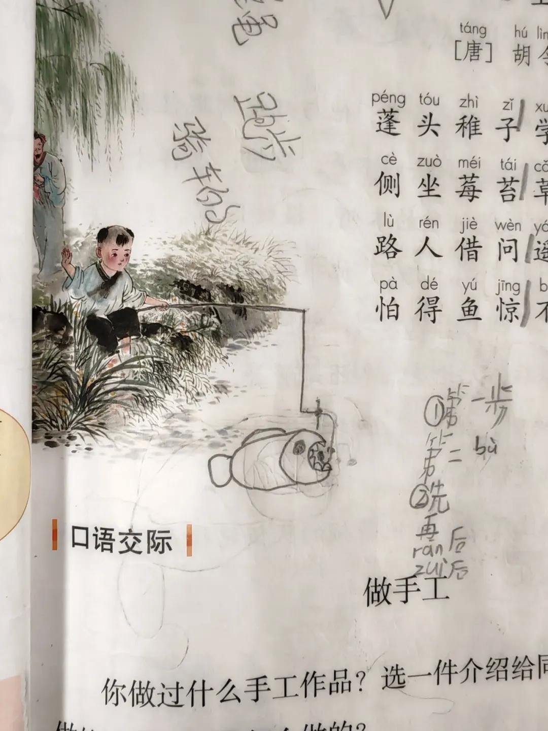 “等孩子们长大了,再看到这些带着缺角、画着小鱼坦克的课本,说不定会想起当年传纸条的小同桌,想起上课偷偷涂鸦的小乐趣,想起塞得满满当当的书包。”