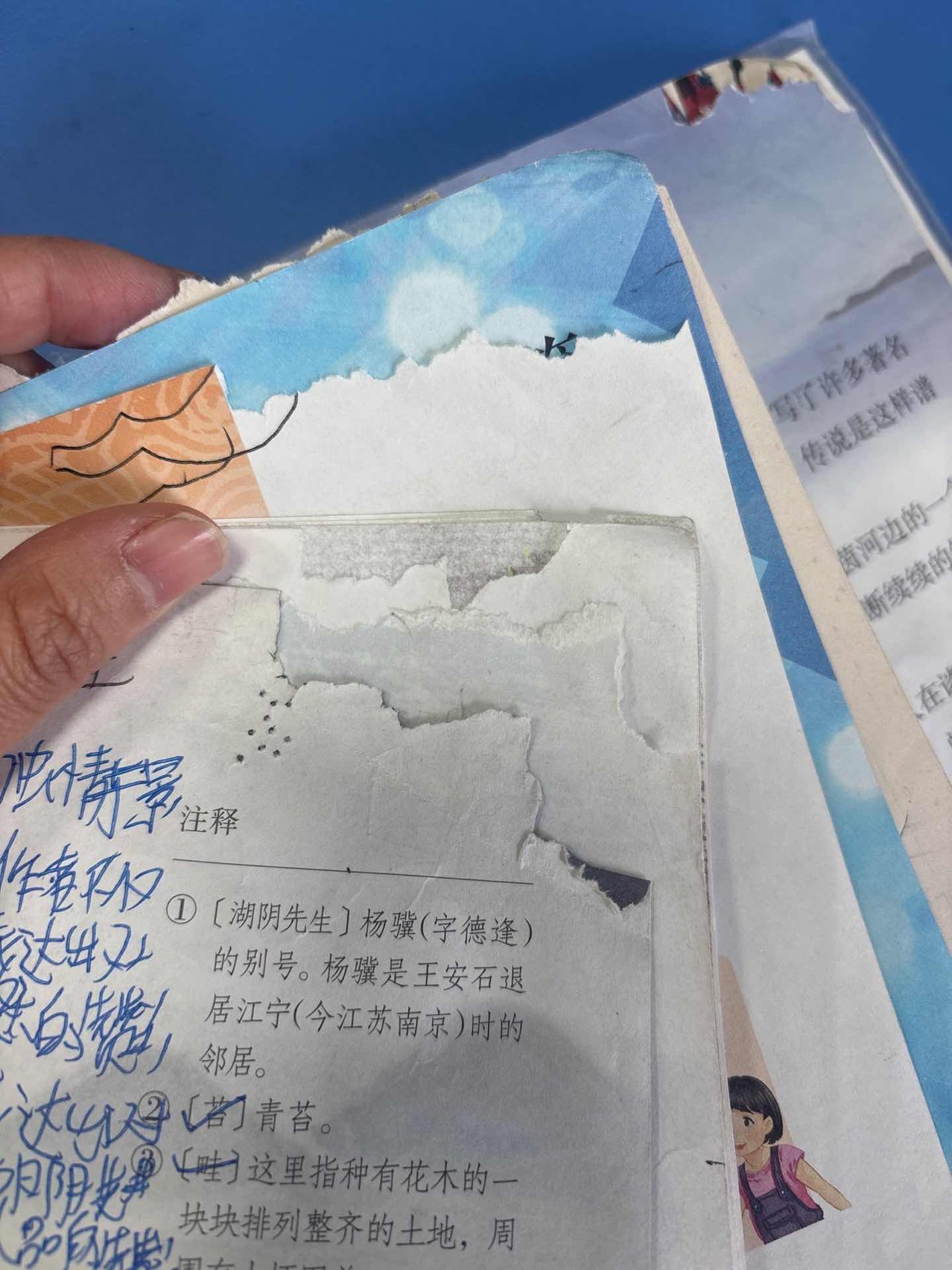 今天,有班主任给潮新闻记者发来了一段视频,视频里,孩子们的语文、数学课本页页皱如秋叶,边缘参差不齐,几乎每一页都带着大小不一的缺角,活像一群历经“战场”的“老伙计”,还有网友发来锐评:这才是最接地气的“读书破万卷”!