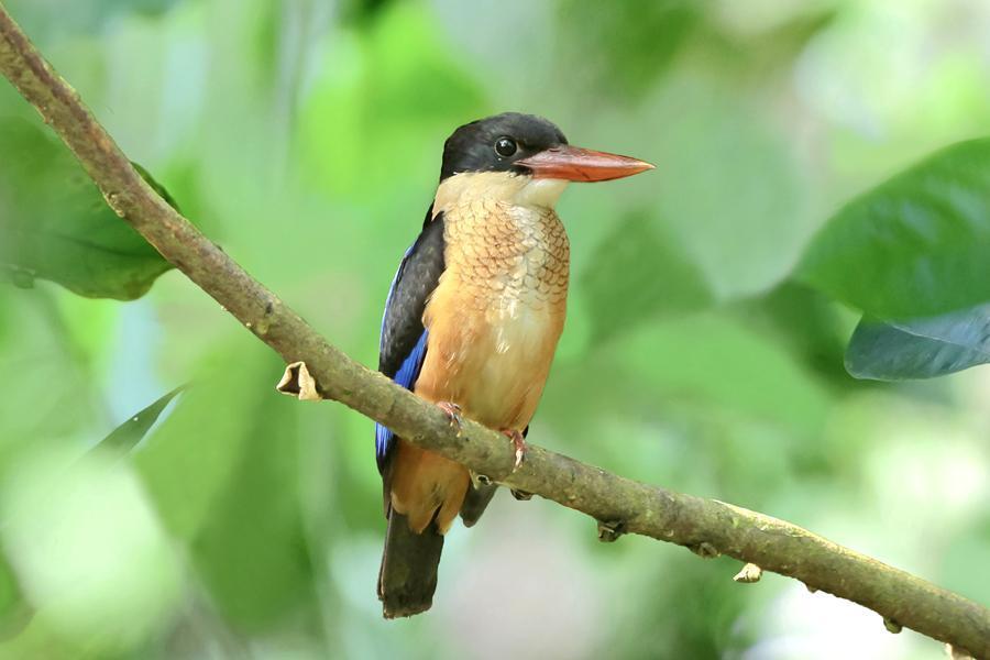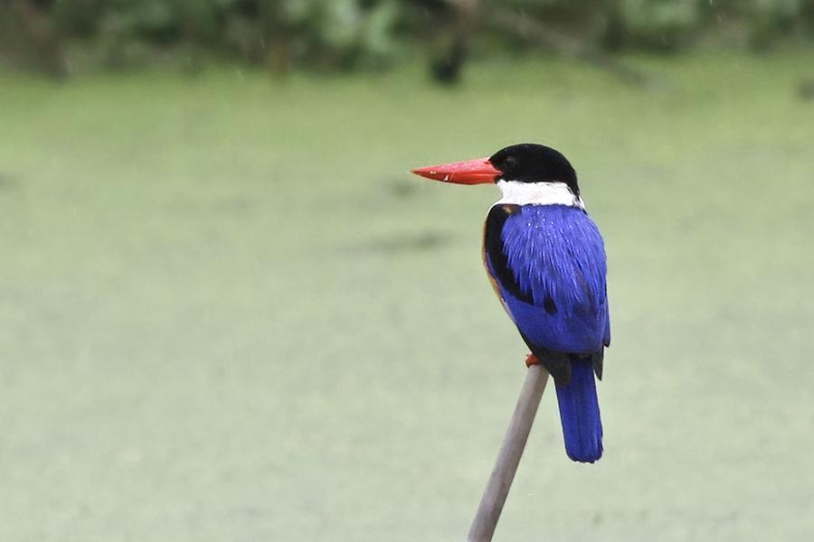 据悉,蓝翡翠是佛法僧目翠鸟科翡翠属鸟类,头顶墨黑,颈圈洁白,背部紫蓝,腹部橙红,喙与腿皆呈鲜红色,飞行时可见翼下的白色斑点。属国家“三有”保护动物,常栖息于沿海湿地及红树林,是一种体型较大的树栖翠鸟。